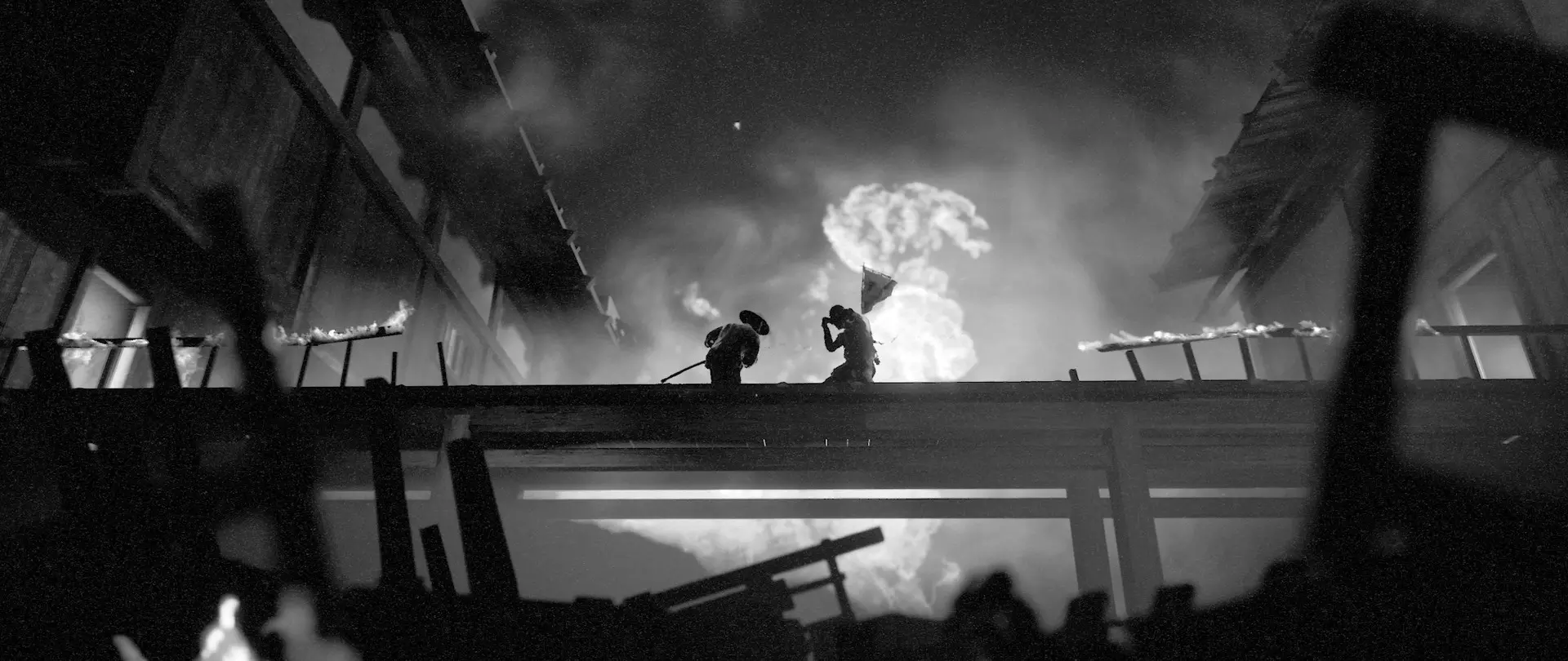 Графика выдержана почти полностью в чёрно-белых тонах, но это не стилизация ради стилизации. Тени ложатся как в плёночных лентах времён Куросавы: резкие, живые, иногда почти осязаемые. Звук сдержан — скрип досок, шелест кимоно, далёкий гул барабана. Игра короткая, часа на три-четыре, и в этом её сила: она не растягивает историю до изнеможения. Закончив прохождение, ловишь себя на мысли, что хотел бы вернуться в это мрачное, но странно умиротворяющее пространство — не ради трофеев, а просто чтобы ещё раз пройтись по тем же дорогам под тот же дождь.