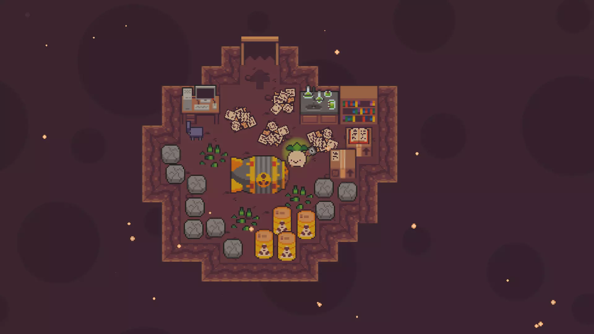 Игра выполнена в милой пиксельной стилистике, но за этой безобидной внешностью скрывается довольно жёсткий экшен-платформер. Персонажу предстоит сражаться с охраной в лице вооружённых морковок, решать простые головоломки и постепенно прокачивать свои навыки — например, научиться отбивать семена врагов обратно в них же. Мир небольшой, но плотно набит секретами: за каждой дверью может ждать либо очередной долг, либо полезный предмет, либо просто странная овощная личность с нелепой просьбой.