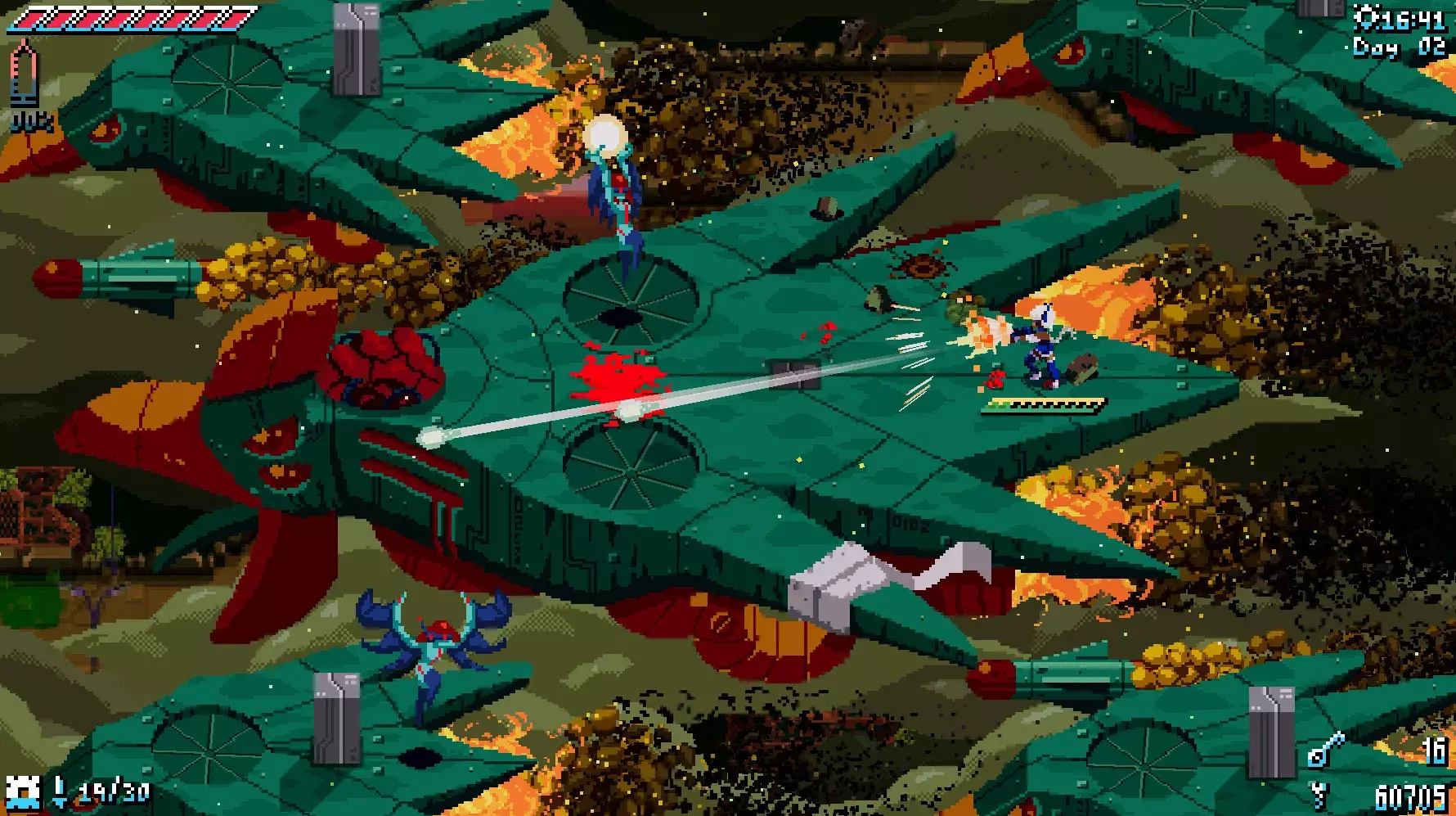 Графика выполнена в пиксельной ретро-эстетике, но без излишней ностальгии ради ностальгии. Цвета сочные, локации запоминаются — от мрачных подземелий до солнечных руин на поверхности. Саундтрек в стиле чиптюн идеально ложится на атмосферу: мелодии становятся тревожнее по мере приближения к критическому моменту, а в тихих моментах дают передохнуть. Всё это создаёт ощущение, будто играешь в нечто одновременно знакомое и свежее — без пафосных заявлений о «революции жанра».