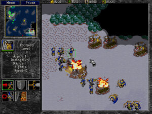 Строительство базы здесь — почти медитация. Сначала пехотинец рубит лес, потом появляется ферма, затем казармы. Капитал растёт медленно, и каждое новое здание требует взвешенного решения: потратить ресурсы на магов или усилить фронт тяжёлой пехотой? Воздушные юниты появляются ближе к концу матча, а нефть для кораблей заставляет оспаривать прибрежные территории. Нет баланса в современном понимании — орки чуть грубее, люди чуть хитрее, и эта асимметрия до сих пор вызывает споры у ветеранов.