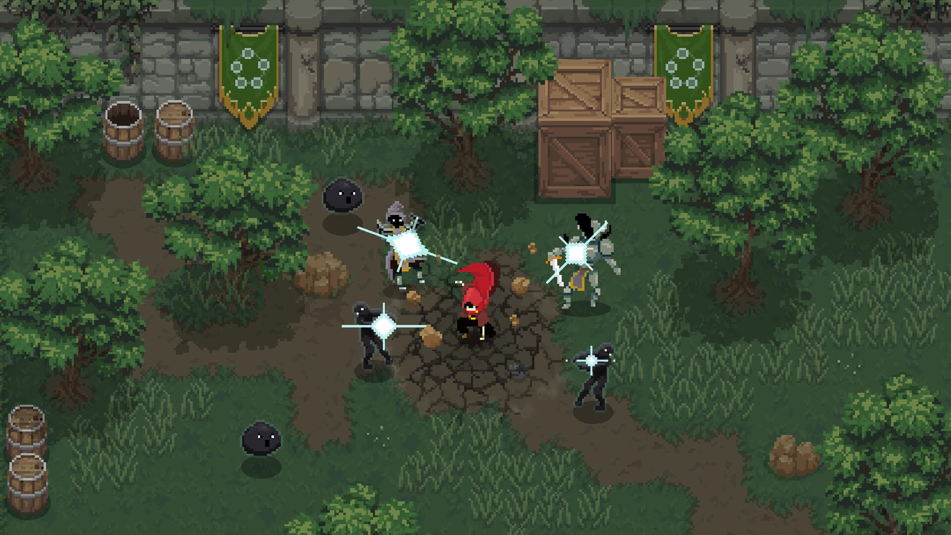 Визуальный стиль выполнен в духе ретро-пиксель-арт, но анимации заклинаний настолько насыщены частицами и эффектами, что экран порой превращается в яркое световое шоу. Такая насыщенность добавляет зрелищности, хотя иногда затрудняет отслеживание собственных действий в гуще сражения. Звуковое сопровождение четко реагирует на каждое действие, усиливая ощущение мощи при касте серьезных чар. Атмосфера древнего турнира передана без лишнего пафоса, фокус смещен исключительно на процесс боя и мастерство игрока.