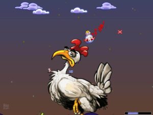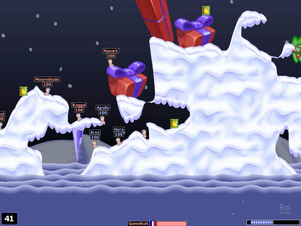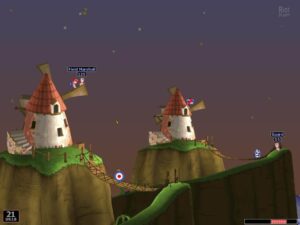 Юмор здесь не приклеен сверху, а вплетён в саму механику. Червяк в костюме Наполеона запускает ракету, промахивается на полкарты и улетает в пропасть под насмешки противника. Такие моменты случаются постоянно, и именно они заставляют игроков возвращаться снова и снова. Игра не пытается быть серьёзной стратегией — она знает себе цену и не стесняется быть глупой, когда нужно.